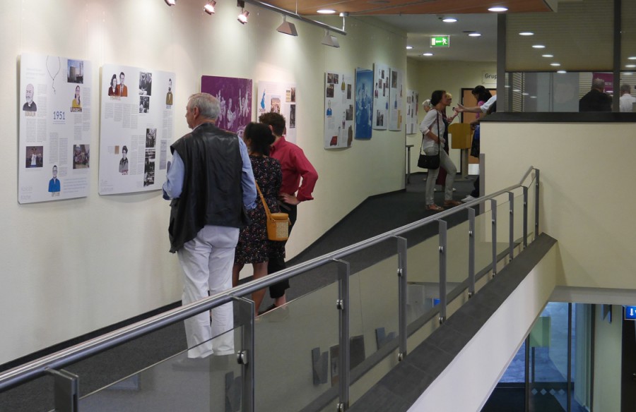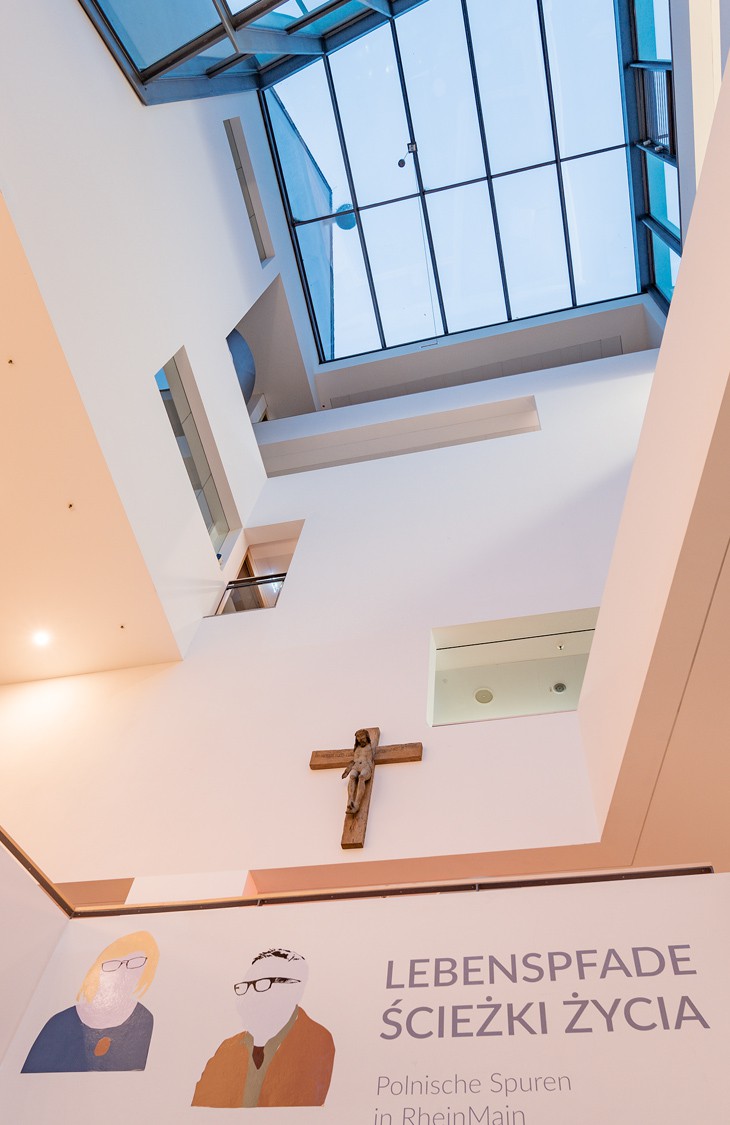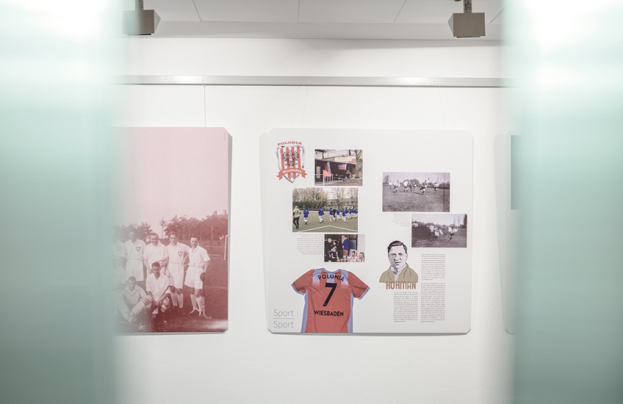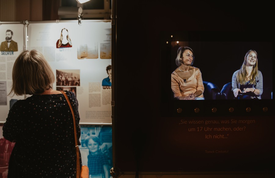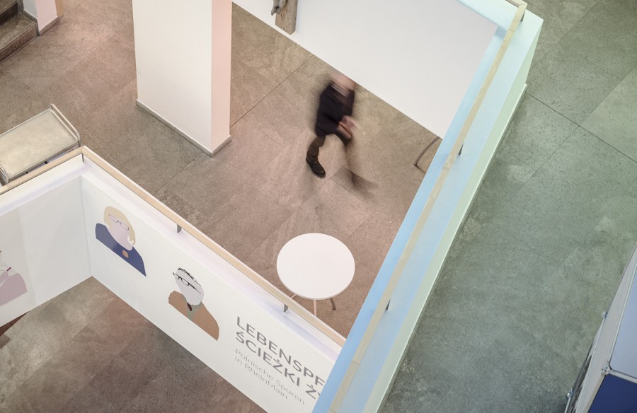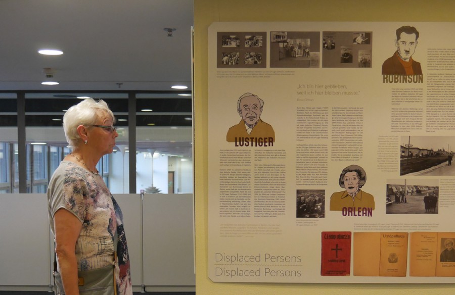 Ausstellung „Lebenspfade – Ścieżki życia. Polnische Spuren in RheinMain“ mit Medienstationen (Clips Zeitzeug:innen).