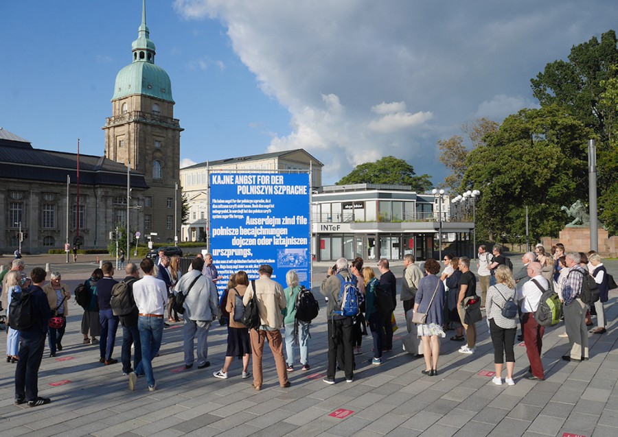 Ausstellung „Überall ist Polen – Polska jest wszędzie“ (100 Jahre Karl Dedecius, 50 Jahre Warschauer Verträge, 40 Jahre DPI), Friedensplatz Darmstadt, 6. August – 11. September 2021.
