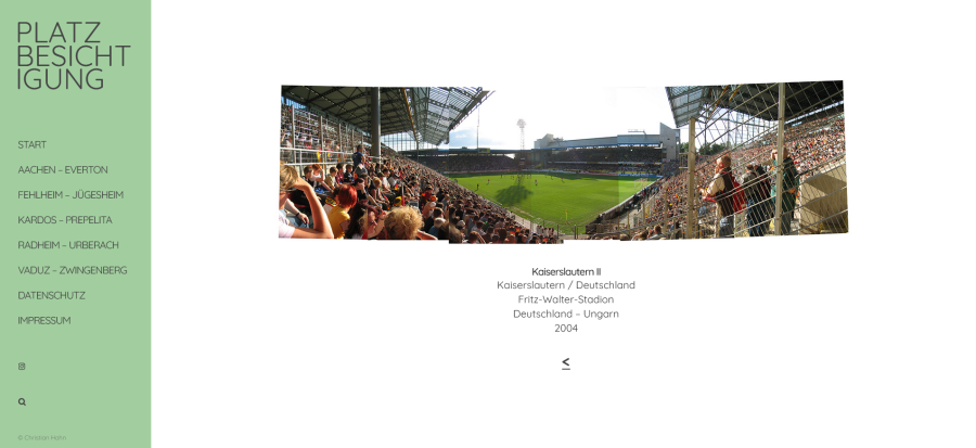 Fotografische Dokumentation von Stadien und Sportplätzen weltweit. Interviews dazu bei dfb.de, im p-Magazin und bei kickschuh.
