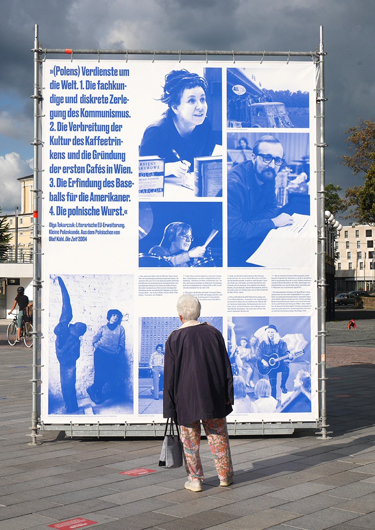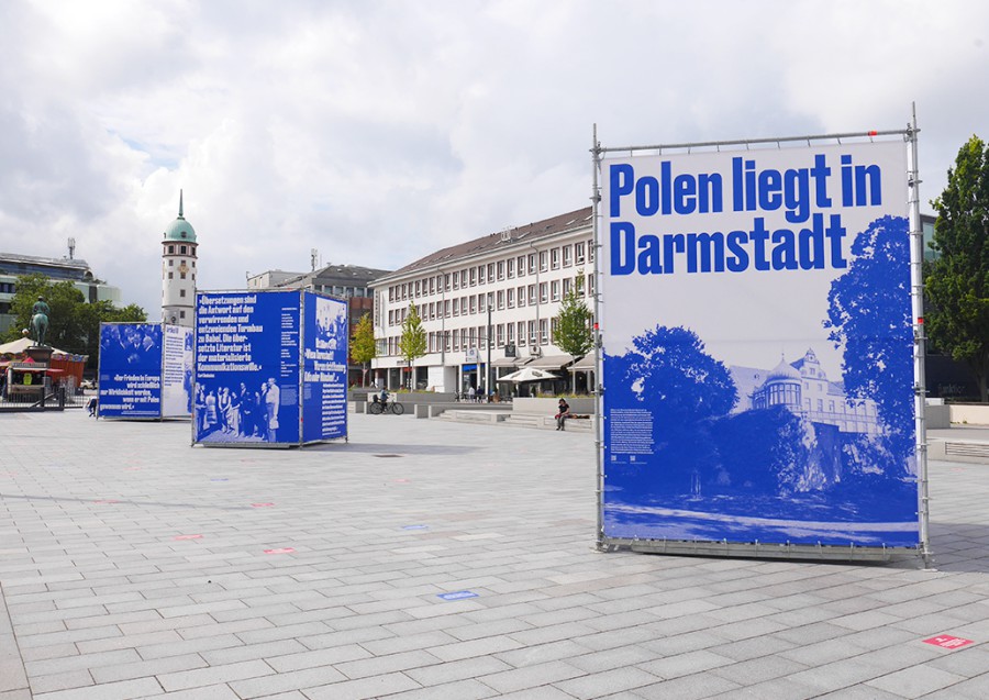 Ausstellung „Überall ist Polen – Polska jest wszędzie“ (100 Jahre Karl Dedecius, 50 Jahre Warschauer Verträge, 40 Jahre DPI), Friedensplatz Darmstadt, 6. August – 11. September 2021.